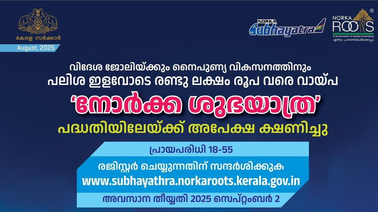 norka shubhayathra വിദേശത്ത് ജോലി നേടാൻ ആഗ്രഹിക്കുന്ന സാമ്പത്തികമായി പിന്നോക്കം നിൽക്കുന്നവരെ സഹായിക്കുന്നതിനായി നോർക്ക റൂട്ട്സ് ‘നോർക്ക ശുഭയാത്ര’ പദ്ധതിയിലേക്ക് അപേക്ഷ ക്ഷണിച്ചു. ഈ പദ്ധതി വഴി രണ്ടു ലക്ഷം രൂപ…